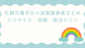 札幌市の区ごとの保育園事情、保活の流れ、子育てにかかるお金や制度を探しやすく整理しています。